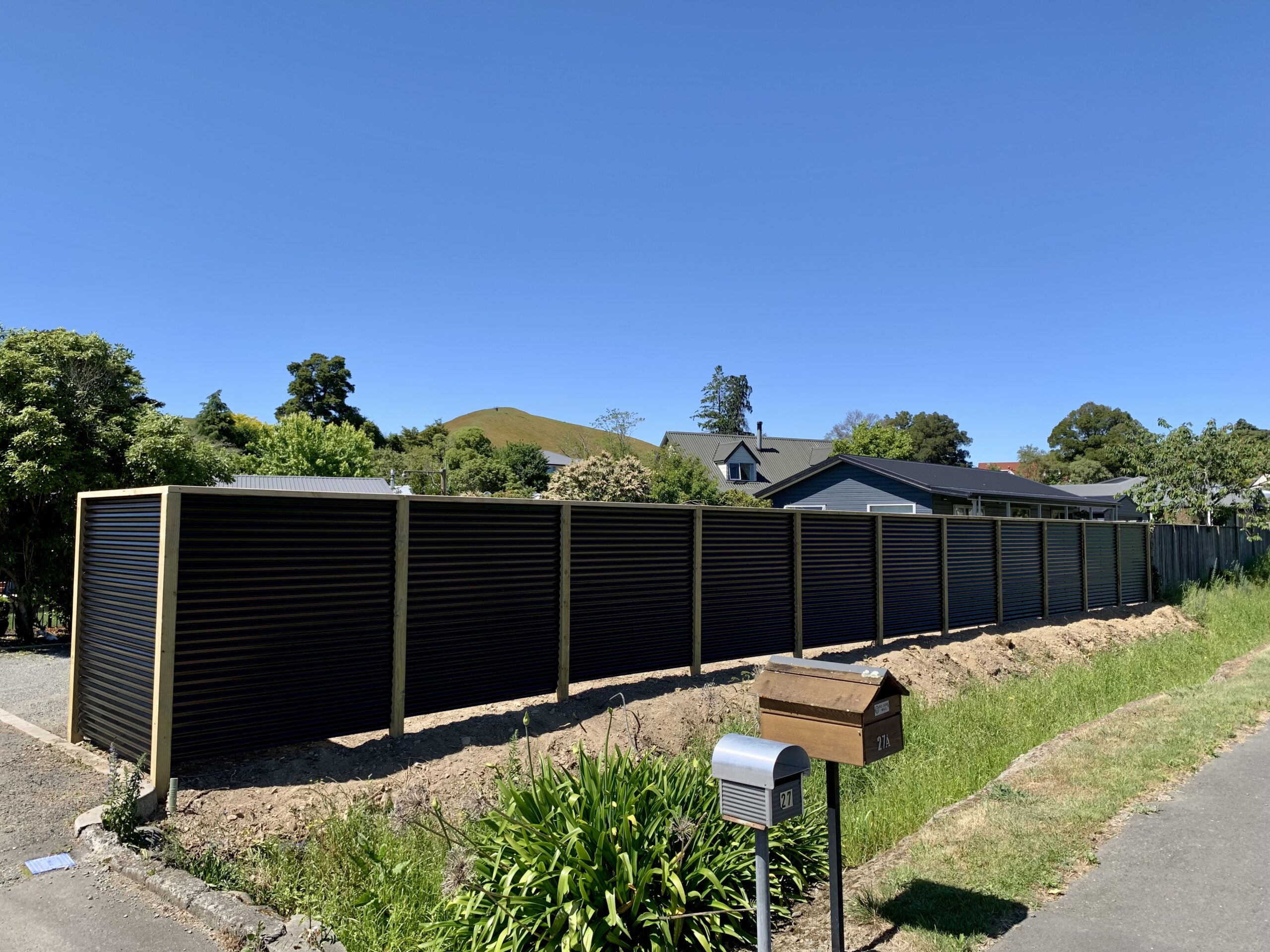 A balanced blend of natural and modern—colour steel framed by timber posts and rails, with optional timber caps for a polished finish.