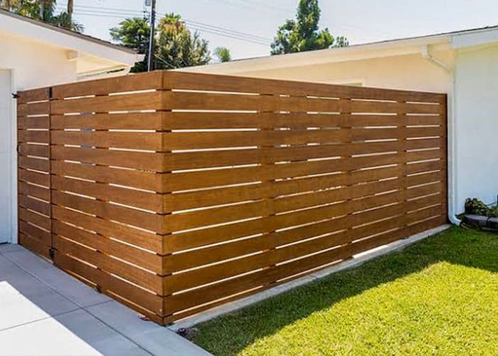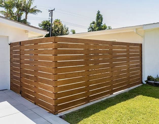 Clean, modern lines—horizontal timber slats create a sleek silhouette with a balance of style and function.