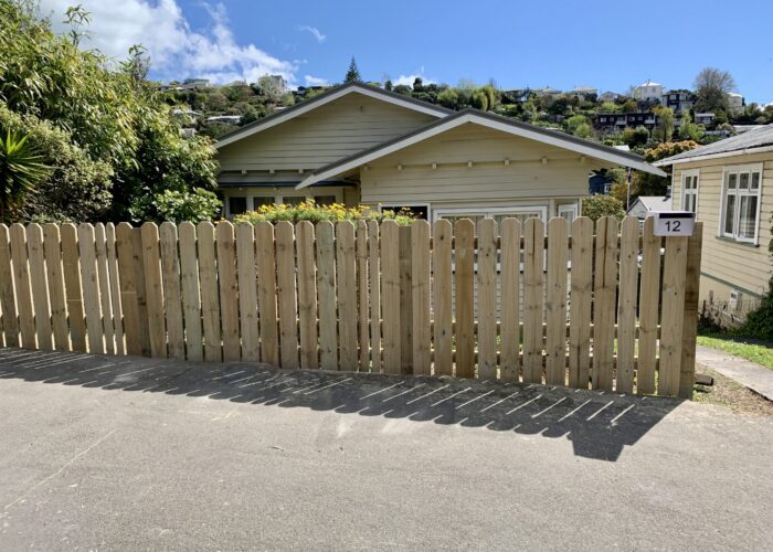 Classic appeal—neatly spaced pickets bring warmth and timeless character to any front yard or garden.