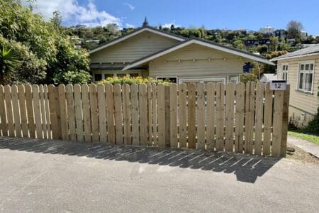 Classic appeal—neatly spaced pickets bring warmth and timeless character to any front yard or garden.